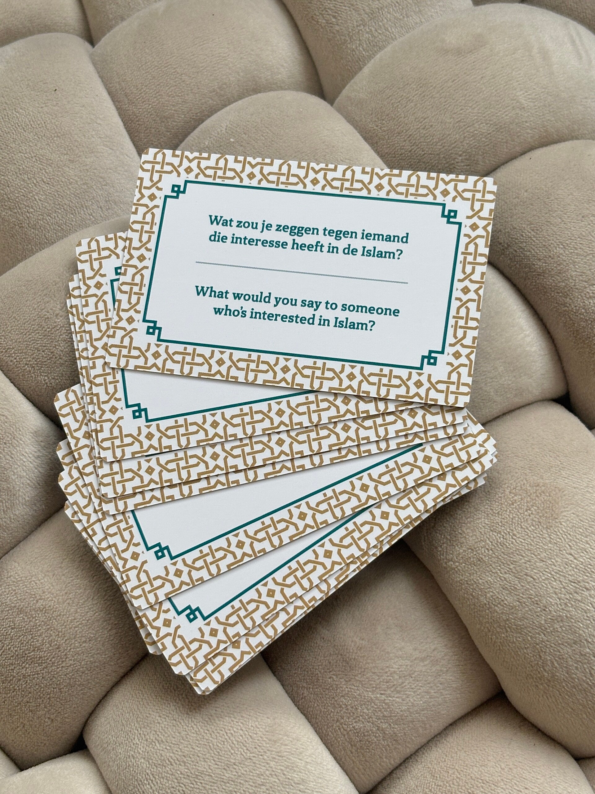 Met deze gespreksstarters kom je tot de mooiste gesprekken over de Islam. Neem het mee naar vrienden, geef ze cadeau aan die ene broeder/zuster of gebruik ze na het eten met je gezin!